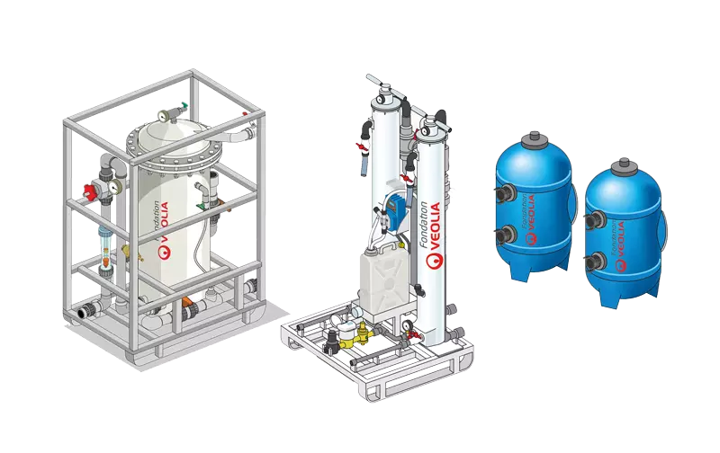 La fondation Veolia a développé plusieurs équipements destinés au secteur humanitaire. Parmi eux, les Aquaforces, unités mobiles de potabilisation de l’eau, ont été conçues pour l'urgence et le terrain. Robustes, adaptables, elles sont très régulièrement testés et déployés sur le terrain avec nos partenaires : Médecins Sans Frontières, Médecins du Monde, la Croix-Rouge française, le Centre de crise et de soutien du ministère français de l’Europe et des Affaires étrangères.... Des manuels d’utilisation disponibles dans plusieurs langues permettent au plus grand nombre de prendre en main les Aquaforces en quelques heures.