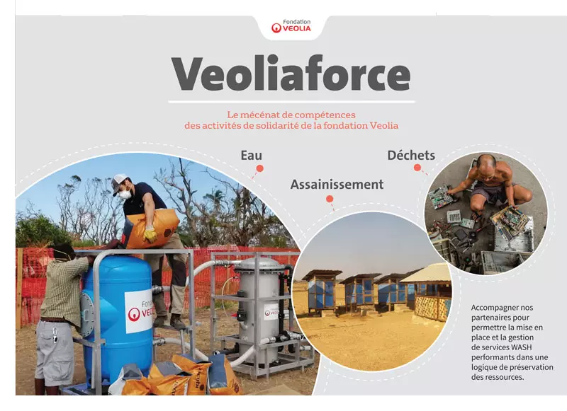 Levier d'action propre à la fondation Veolia, le mécénat de compétences Veoliaforce conduit à mettre l'expertise des collaborateurs Veolia à disposition de partenaires ONG.