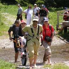 A Joëlette is a means of transport, designed and manufactured in France, which has changed the lives of a large number of handicapped persons by enabling them to discover forests, mountains and nature. It's a sort of "all-terrain" wheelchair, equipped with a single wheel and pushed by an assistant. Thanks to this invention developed in 1990s by a company in Saint-Étienne, Bulgarian children will now discover the joys of outings in the wild, regardless - or almost - of the quality of the land. In Bulgaria, handicapped children are still too often trapped in "children's homes", rather sad orphanages, or cloistered in their families, who are stymied by the lack of resources and national programs adapted to their handicaps.