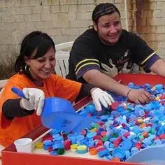 In 2005, for instance, two new projects were started: the selective sorting of drinks bottles caps, the profits from which can be used to buy “handisport” chairs for handicapped people and to welcome refugees and asylum seekers.