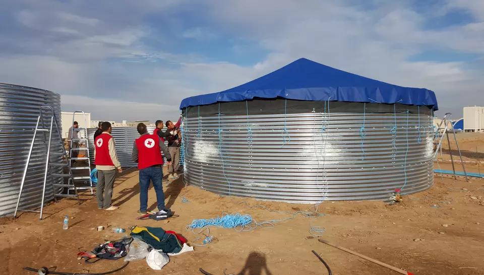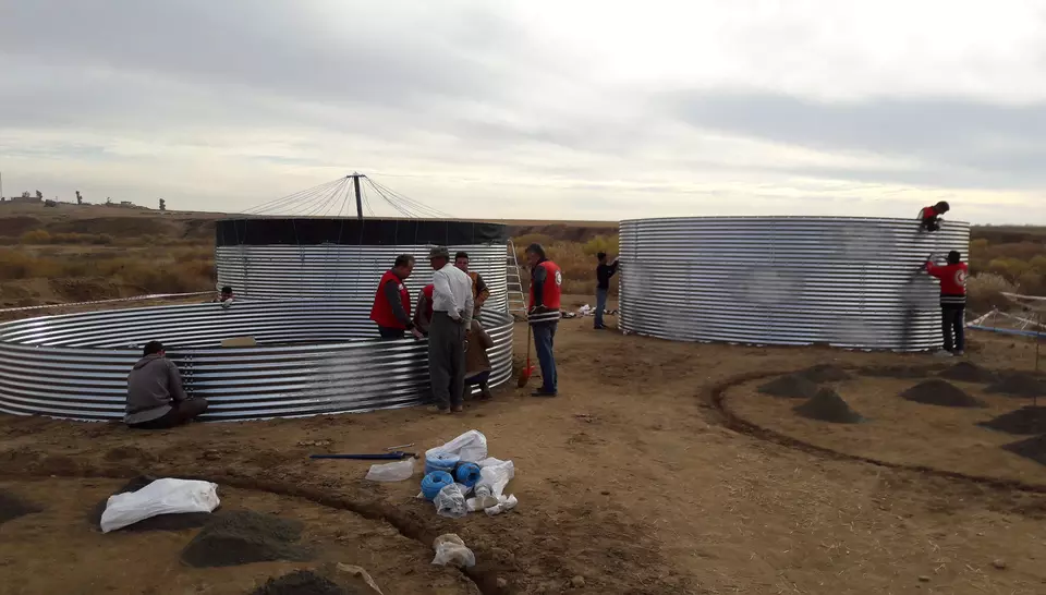 The Veolia Foundation is helping the French Red Cross and the Qatari and Iraqi Red Crescent to supply drinking water to the Khazer 2 camp, located 30 km east of Mosul in Iraq. This refugee camp is home to 2,500 families, or around 20,000 people.