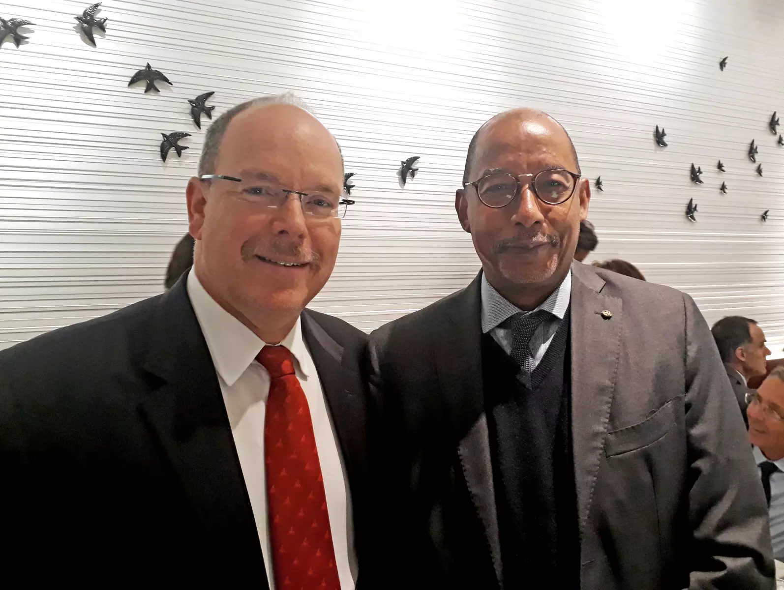 SAS le Prince Albert II de Monaco avec le Docteur Ibrahim Assane Mayaki, président de la Global Alliance against Cholera and other Water borne diseases (GAAC), et Secrétaire exécutif de l'Agence du Nepad / H.S.H. Prince Albert II of Monaco, and Dr. Ibrahim Assane Mayaki, GAAC's president, Secretary-General of the African Union's N.E.P.A.D. Agency.