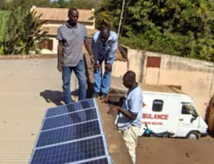 Running an electric power generation facility by photovoltaic collectors at the Community Health Center of Médina-Coura.