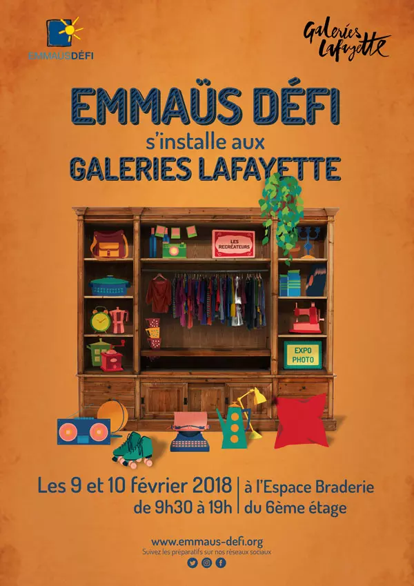 Deux jours pour dénicher les créations et les perles rares d’Emmaüs Défi… Voilà le programme alléchant des Galeries Lafayette les 9 et 10 févriers prochains. La célèbre enseigne proposera, dans son flagship parisien du boulevard Haussmann, une sélection de produits dénichés dans les ateliers Emmaüs Défi. Un corner de 115 m² sera dédié à l’événement, dont 35 m² aux ReCréateurs, une nouvelle initiative de l’association soutenue par la fondation Veolia.
