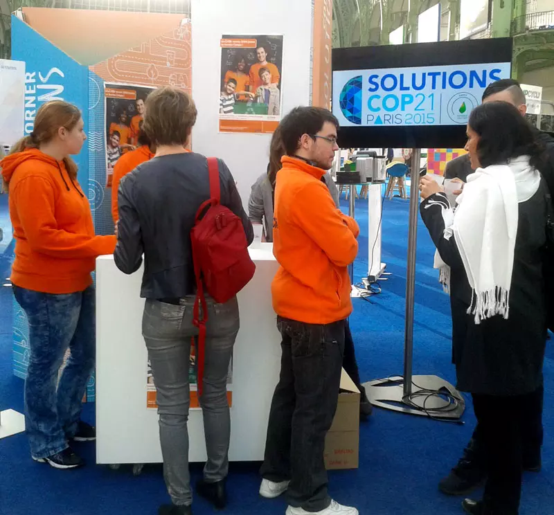 La COP 21 n’est pas qu’une rencontre entre représentants institutionnels. Au Grand-Palais, un dispositif inédit, baptisé Solutions COP 21, permet à de nombreux acteurs, ONG et entreprises, de valoriser leurs solutions pour le climat. Parmi les associations présentes, Unis-Cité a mobilisé une dizaine de jeunes.