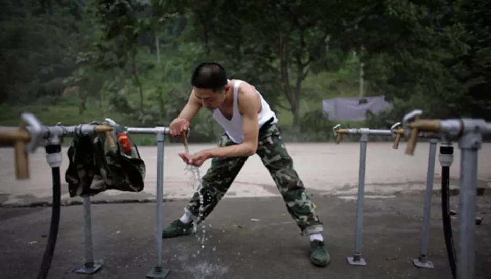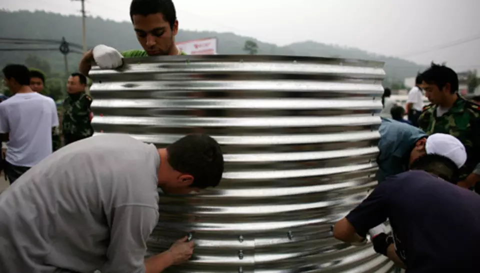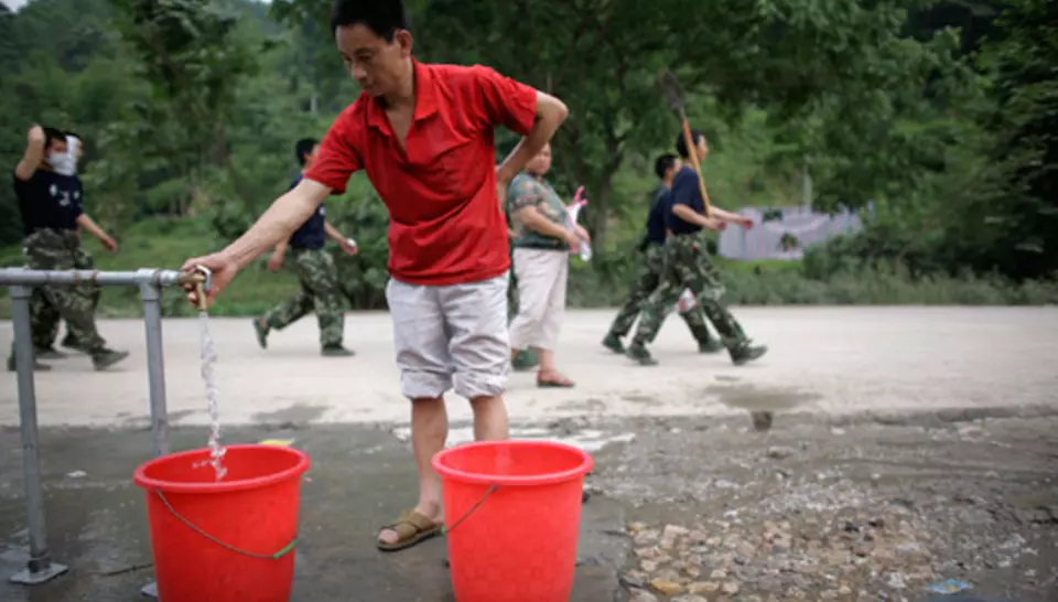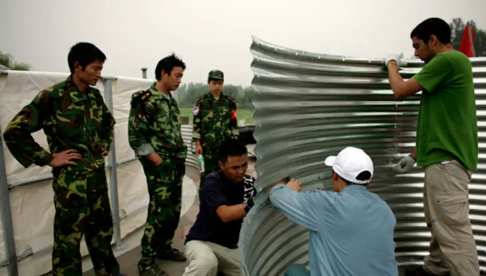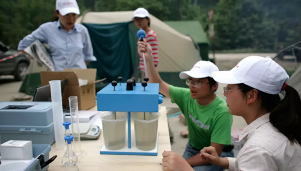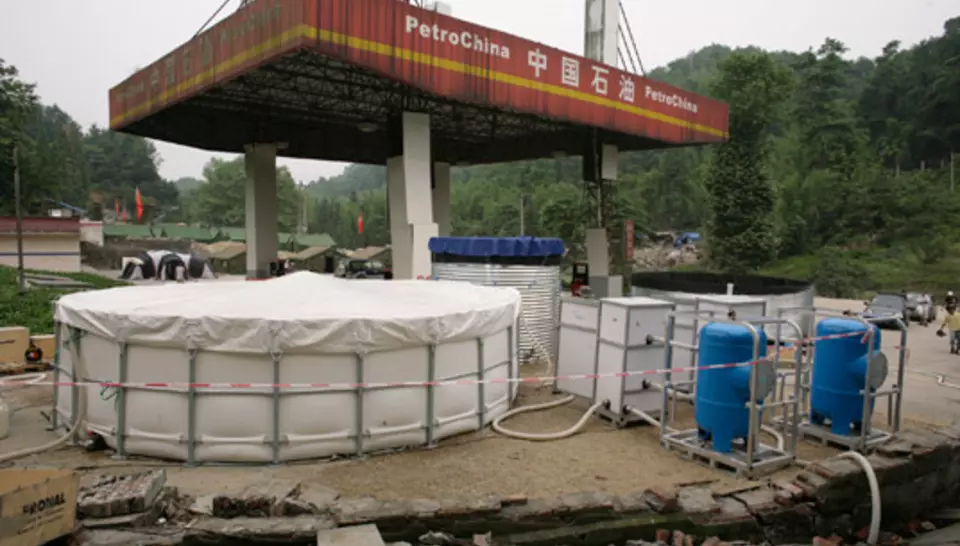 Le 21 mai, deux volontaires se rendaient au village de Xiang'e, dont les milliers de survivants étaient sous des tentes. Diagnostic fait, on pouvait utiliser une source comme approvisionnement. L'équipe locale les rejoignait en camion avec le matériel. Apres quelques travaux de terrassement, la ligne Aquaforce était installée puis renforcée par des camions citernes pour répondre à l'afflux de demande des environs. Dès le 24 mai, une deuxième station fonctionnait à Taguanje. La troisième Aquaforce allait arriver le 31 mai, avec deux volontaires français qui venaient prendre le relais de leurs collègues. Le 4 juin, elle était installée a Ci-Fong, pour alimenter 10 000 personnes. Les volontaires chinois allaient ensuite faire tourner les trois stations en se relayant tous les quinze jours.