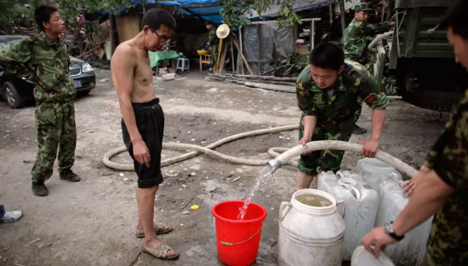 Les autorités chinoises se sont rapidement tournées vers Veolia Water Asie qui fait appel à Veoliaforce. Deux unités mobiles de traitement d'eau sont envoyées sur place dès le 16 mai, accompagnées par trois experts de Veoliaforce. Sur place, parmi les nombreux collaborateurs ayant répondu à l'appel de Veolia Water Asie, neuf étaient choisis pour leur expertise en réseaux, en exploitation ou en chimie, et se joignaient a Tian Gang, directeur de l'usine Veolia Water a Chengdu, pour former l'équipe locale (Tian allait jouer par ailleurs un rôle clé dans la liaison avec les autorités). Aussitôt, ils bénéficiaient d'une formation accélérée de trois jours.