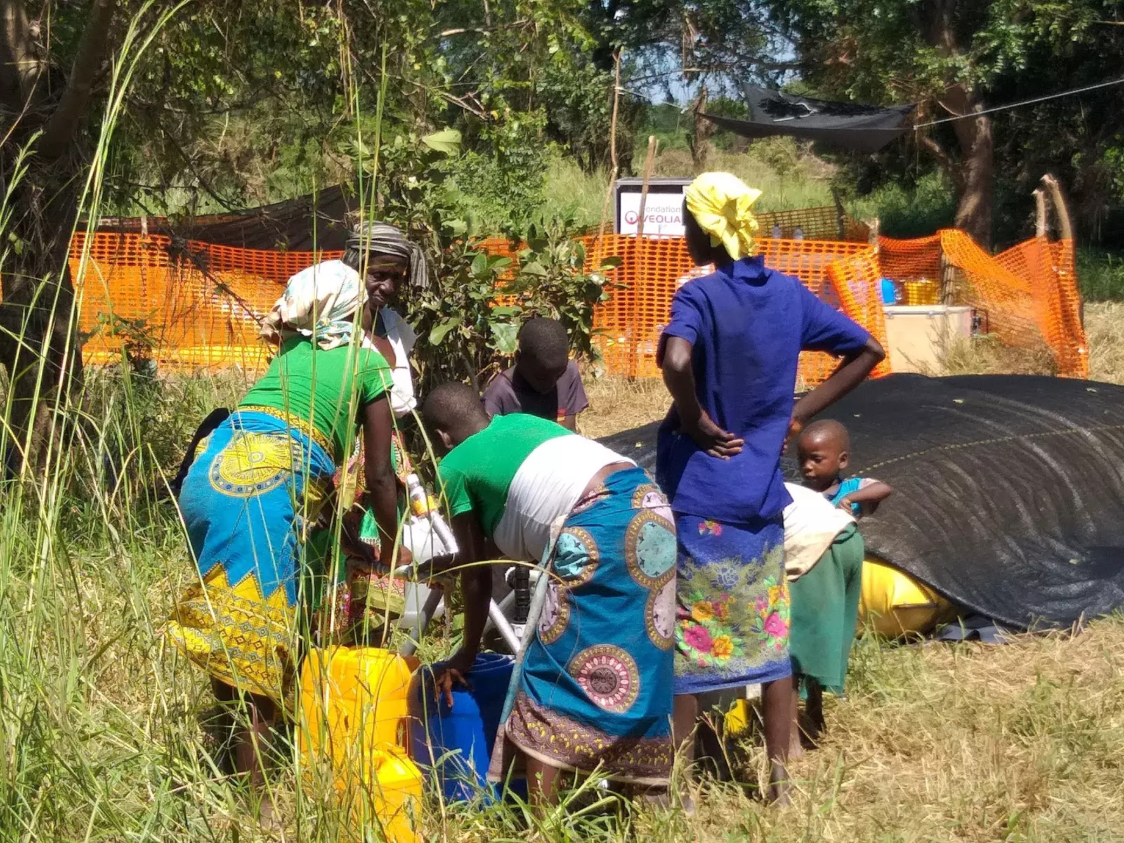 CB : Oui, c’était à quelques dizaines de kilomètres de Dombé, à l’Ouest de Beira. Il a fallu identifier le meilleur point d’approvisionnement en eau et organiser l’accès à des rampes de distribution que nous avons voulu installer au plus près des populations, soit 1 kilomètre de tuyaux à faire courir en pleine nature.