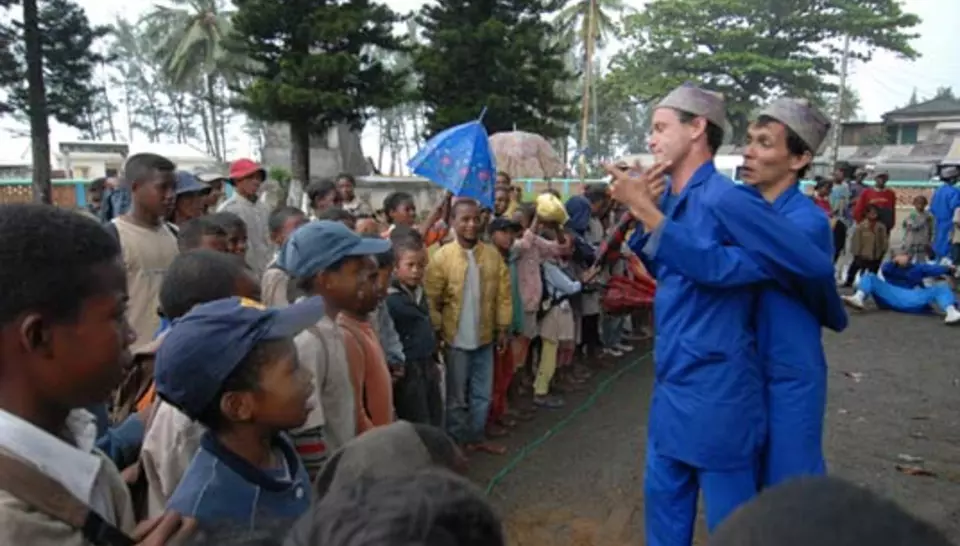 Depuis 2000, des équipes de Clowns sans frontières œuvrent à Madagascar. Dans la Grande Ile, en effet, de nombreux tabous et croyances persistent à freiner le développement du pays et pèsent très lourdement sur le quotidien et le devenir des enfants. Les clowns et leurs “collègues” (comédiens, danseurs, musiciens, acrobates…) espèrent parvenir à lever certains tabous grâce à l’humour et à la poésie de leurs représentations. En cinq ans, Clowns sans frontières France a ainsi organisé trente-sept spectacles à destination de la population et surtout des enfants.