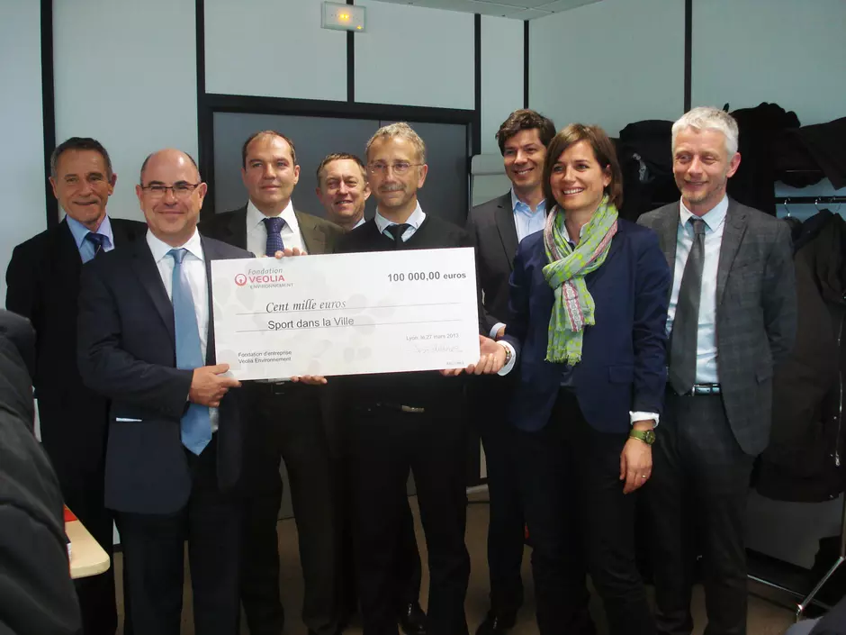 Créé en 1998, Sport dans la Ville a pour mission de favoriser l'insertion sociale et professionnelle de jeunes des quartiers sensibles grâce à ses centres de pratique sportive, ses programmes de formation et d'accompagnement vers l'emploi. L'association a déjà à son actif 21 sites en région Rhône-Alpes et un premier en Ile-de-France, à Sarcelles. 3 000 jeunes de 7 à 20 ans y exercent gratuitement et régulièrement une activité sportive et participent à des actions éducatives : par exemple l'« Apprenti' Bus », atelier itinérant de lecture et d'écriture pour les préadolescents des quartiers sensibles de l'agglomération lyonnaise, financé en partie par la Fondation. Au-delà de cet apport financier, Veolia Eau et Sport dans la Ville ont noué des liens étroits à travers le parrainage et même l'embauche, en tant que releveurs de compteurs, de plusieurs jeunes sportifs présentés par l'association.
