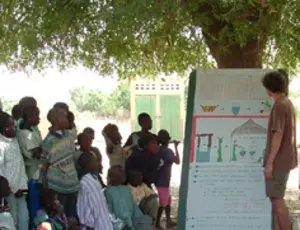 Programme d'animation pour sensibiliser un public rural africain aux risques et méthodes de prévention du paludisme.