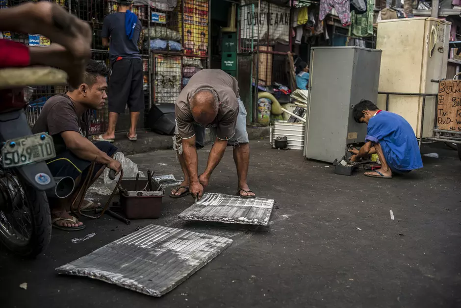 Jusqu’en 2017, les Philippines n’avaient pas envisagé la création d’une filière réglementée pour recycler les appareils d’air conditionné, les réfrigérateurs, les téléviseurs à tube cathodique, les téléphones ou les ventilateurs... Des démanteleurs de tous âges, dont des enfants, extraient de ces matériels les matières valorisables, principalement les métaux (cuivre, or argent, aluminium, plomb...). Ils les revendent à des grossistes de quartier (junk shops), qui les revendent eux-mêmes à des grossistes de région pour les exporter vers des pays développés où ils servent de matière première. Des habitants pauvres de certains barangays[1] démantèlent les D3E pour créer un revenu complémentaire, ou une activité principale, qui fait vivre leurs familles.