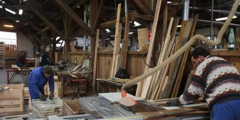 Ils fabriquent des palettes, des caisses, puis se lancent dans des travaux de menuiserie et d'ébénisterie.