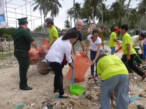 Harmonie Mékong a amorcé son programme de soutien aux villageois de la presqu’île de Cam Ranh en 2011. Le projet consiste alors à organiser le ramassage des ordures : l’association prévoit de nettoyer les plages.