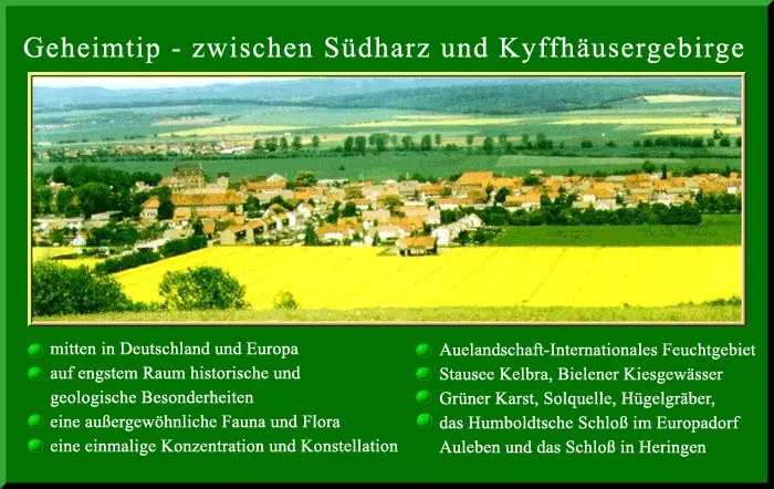 L'association Förderverein « Goldene Aue » (association de promotion de la plaine alluviale d'or) fédère par ses activités l'attachement des gens de la région à la flore, la faune, la géologie, l'héritage historique et culturel de ce site exceptionnel, l'une des 33 zones humides allemandes de protection de la nature et de l'environnement - la seul en Thuringe. Cette dernière fait partie de tout un système naturel hydrologique et géologique pour lequel la source d'eau saline d'Auleben est un élément important.